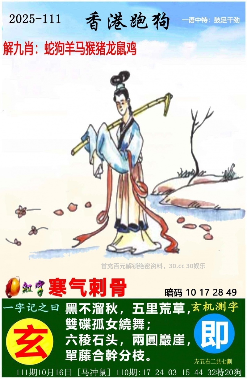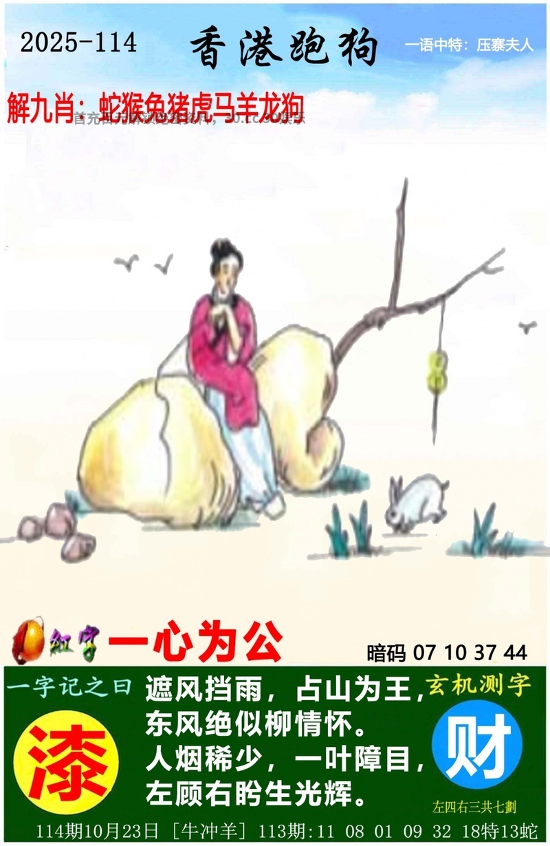 一字玄机解释:氵解水肖,鼠猪,女解女肖,猪羊蛇兔鸡。